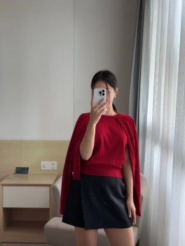 K582高級羊毛兩穿披肩造型針織衫