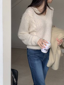 K586毛料麻花V領針織衫
