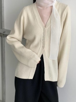 K579V領貝殼釦綁帶收腰羊毛針織上衣