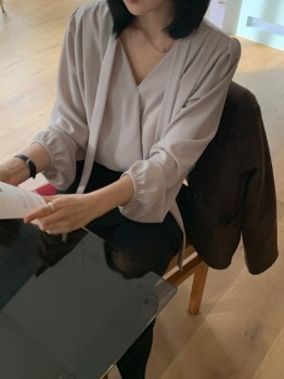 K584質感天絲滑料側抓線條領巾襯衫