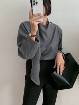 K585混羊毛領巾挺版簡約高質感上衣