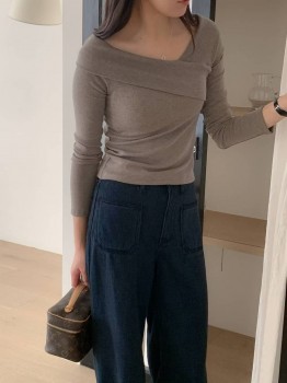 K573垂領收腰造型親膚針織上衣